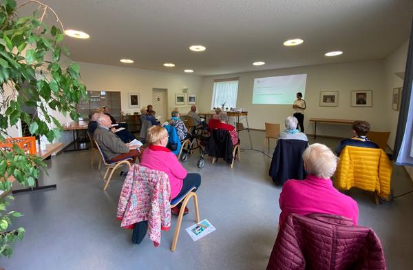 vom Projekt „Digitaler Engel“ 15 Personen in den Räumen der Begegnungsstätte – wieder unter Einhaltung der Hygienevorschriften mit viel Abstand zwischen den Teilnehmer*innen. Vielfältige Antworten wurden von den Anwesenden zusammengetragen: Mit Kindern und Enkeln in Kontakt bleiben, eine Informationsquelle, eine Möglichkeit, Dinge für den Alltag zu bestellen. Eine Teilnehmerin fasste viel Punkte zusammen in einem Satz: „Internet ist für mich eine Verbindung in die ganze Welt!“