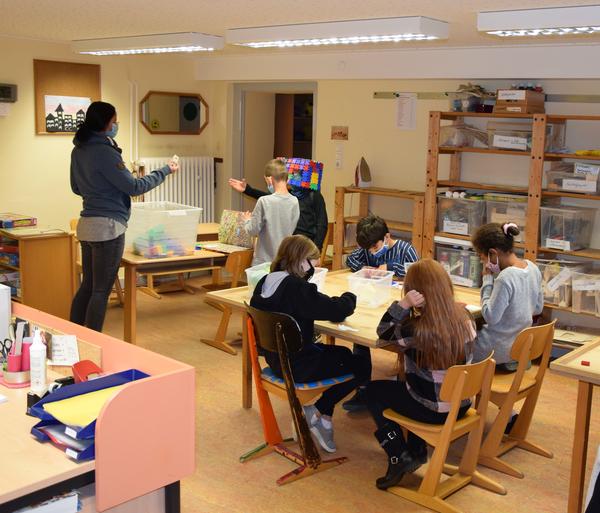 Hausaufgabenunterstützung, spielerisches Lernen, gemeinsames Mittagessen, kreatives Basteln und Handwerken – in der Schulbetreuung werden keine Noten vergeben, unabhängig vom Leistungsdruck erhalten die Schulkinder Unterstützung in schulischen Dingen oder können ihren Bedürfnissen individuell nachgehen. Auch die Integration von Kindern mit Migrationshintergrund ist ein großes Thema. „Wir sind hier ein tolles Mitarbeiter-Team, das sich auf die Bedürfnisse der Kinder einstellen und ein vielfältiges Angebot bieten kann“, freut sich Jeanette Schmitto, derzeitige Schulbetreuungsleitung und Beisitzerin des Fördervereins. „Die Kinder kommen gern hierher und bringen oft eigene Ideen mit, wie sie den Nachmittag gestalten wollen.“ Dabei verbringen die Kinder auch viel Zeit in der Natur oder im Schulgarten. So hat Lucas Liese, Mitarbeiter der Schulbetreuung, erst kürzlich mit einer Schulkindergruppe eine Hütte im Wald erweitert, Feuer gemacht und Tee gekocht. „Wir sind keine Stubenhocker, wir gehen viel mit den Kindern nach draußen und lassen uns immer neue Dinge einfallen“, erzählt Lucas Liese. Die Betreuungszeit vor und nach der Schule wird so zu einem täglichen Erlebnis.