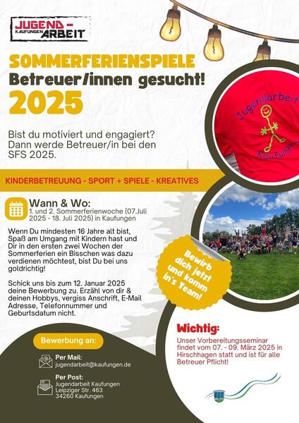 Betreuer*innen für Sommerferienspiele 2025 gesucht!