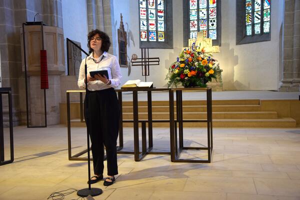 Bei schönstem Frühlingswetter begaben sich Interessierte in die Stiftskirche, um dort eine Zeit- und Fantasiereise zu machen. Die „Reiseleiterin“ war Dr. Christina Bickel, Pfarrerin der evangelischen Kirchengemeinde Oberkaufungen. Sie nahm die Anwesenden u.a. mit in das Schloss, in dem Aschenputtel ihren Prinzen gemäß den Brüdern Grimm traf sowie hoch über den Rhein auf den Felsen der Loreley nach Heinrich Heine. Doch auch die Unnahbarkeit manch prächtiger Trutzburg, wie Kafka in seinem Roman „Das Schloss“ beschrieb, wurde nicht ausgelassen. Pfarrerin Bickel las auch aus den Werken von Boccacio und durch die lebhafte Art ihres Vortragens fühlten die Gäste sich mittendrin. So waren die Zuhörer von schwarzem Samt und Goldlüstern, eingemauerten Rittern, knisterndem Kaminfeuer und einem geheimen Treffen einer Edeldame mit ihrem Knappen gefesselt.
