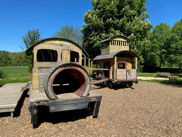 Eisenbahnwaggongs auf Themenspielplatz Steinertsee werden grundhaft erneuert