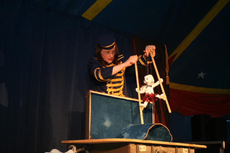 Grund war eine rasant grandiose Circusvorstellung mit Kerstin Röhn vom Theater Laku Paka, die nicht nur den kleinen, sondern auch den größeren Besuchern viel Spaß bereitete. Artistische Engel in Form von phantastisch gestalteten Marionetten schwebten über die Zirkusbühne und zeigten ihre Künste auf Wolke 8. So verzauberte u.a. Bella, die etwas übergewichtige Balletttänzerin, das Publikum mit Ihrer grazilen Tanzeinlage ganz nach dem Motto: „Federleichtes Schweben kann es nur im Himmel geben!“