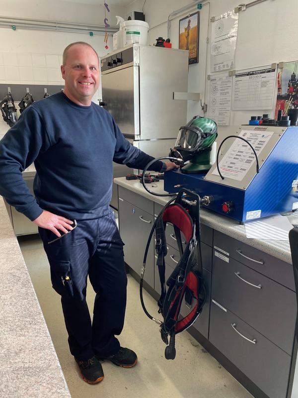 Bei der Gemeinde Kaufungen ist Mattias Böttger bereits seit 2001 beschäftigt, in diesem Sommer wechselte er jedoch seinen Arbeitsplatz von der Werkstatt des Bauhofs in das Gebäude der Feuerwehr. Der erfahrene Feuerwehrmann kann nun sein Hobby als Beruf ausüben – er ist Kaufungens neuer hauptamtlicher Feuerwehrmann. In dieser Funktion kümmert er sich vorwiegend um die Atemschutzgeräte, um die Reinigung von Atemluftflaschen, Masken und Lungenautomaten. Zu seinen Aufgaben gehört außerdem die Prüfung von Messgeräten und Chemikalienschutzanzügen. Seit 31 Jahren gehört Böttger bereits der Einsatzabteilung der Kaufunger Feuerwehr an - von 2005 bis 2015 war er Gemeindebrandinspektor - und er macht diesen wichtigen Job mit Begeisterung. Atemschutzgerätewart war er in diesem Zusammenhang bereits seit dem Jahr 2000, nun jedoch versieht er diese Tätigkeit im Rahmen der Interkommunalen Zusammenarbeit. Im vergangenen Jahr beschlossen die Gemeinden Kaufungen, Helsa, Lohfelden, Niestetal, Nieste und Söhrewald eine Kooperation im Bereich der feuerwehrtechnischen Aufgaben. Durch die Einstellung von hauptamtlichen Kräften wird das ehrenamtliche Personal von wiederkehrenden Routineaufgaben entlastet und eine effizientere und effektivere Aufgabenerledigung der Feuerwehren gewährleistet.