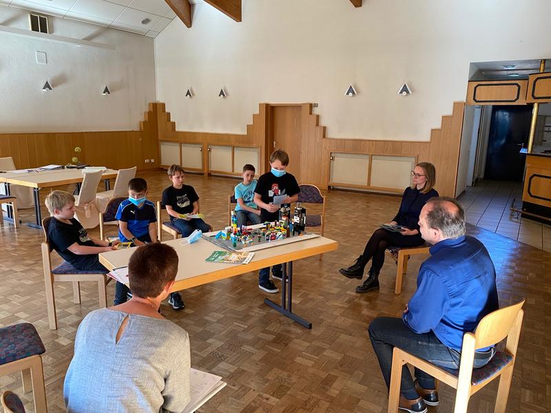 Dr. Tina Hoffmann-Deist, Mutter und Lehrerin für Deutsch und Englisch, begleitet die Schülergruppe und coacht das kleine Team. Sie war es auch, die Kontakt aufnahm ins Rathaus und anfragte, ob ein Gespräch in Sachen Planung und Organisation der Gemeindeentwicklung möglich sei und die Kinder ihre speziellen Fragen den Fachleuten vortragen könnten. Bürgermeister Arnim Roß freute sich über so viel Kreativität, fand das Projekt spannend und machte kurzfristig eine Begegnung möglich.