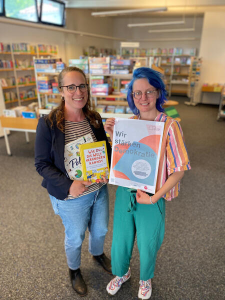 „Land.schafft.Demokratie“ – so lautet der Titel eines Kooperationsprojektes, mit dem die Bundeszentrale für politische Bildung (bpb) und der deutsche Bibliotheksverband e.V. (dbv) Büchereien im ländlichen Raum bei der Durchführung von Veranstaltungsangeboten fördert. Büchereimitarbeiterin Lea Müller und Katharina Reinhold, Koordinatorin für Bürgerbeteiligungsprozesse in Kaufungen, haben in Zusammenarbeit ihre Ideen und Vorstellungen für passende Angebote zur Demokratieförderung erarbeitet und eine Bewerbung für dieses Programm beim Bibliotheksverband eingereicht. Die Initiative war erfolgreich – aus insgesamt 55 Bewerbungen wurde Kaufungen für die Runde der 15 teilnehmenden Bibliotheken ausgewählt – als einziger Standort in Hessen!