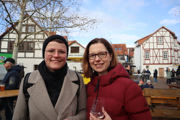 Ein Glas Wein in guter Gesellschaft ließen sich die Freundinnen Sarah und Jenny schmecken – Sarah ist eine begeisterte Feierabendmarkt-Gängerin, während Jenny zum ersten Mal mitgekommen ist. Beide waren sich einig – „Schön hier!“