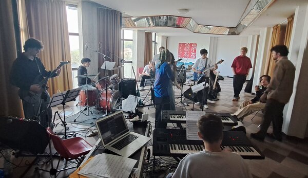 In der hinter ihnen liegenden Woche haben die deutschen und italienischen Jugendlichen des städtepartnerschaftlichen Musikprojektes Rock E45 ein Programm von 10 Liedern erarbeitet und in einem Konzert vor den Schüler/innen der örtlichen Mittelstufen Schule präsentiert.