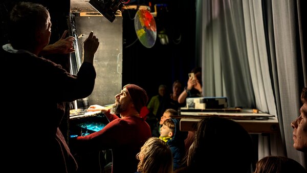 Das Publikum nutzte die Pause und die anschließenden Nachgespräche der Vorstellung, um Eindrücke auszutauschen und den besonderen Reiz des Schattenspiels zu würdigen. Nach der Aufführung konnte sowohl Groß als auch Klein einmal hinter die Kulissen schauen und mit dem Regisseur & Sprecher Friedrich Raad ins Gespräch kommen.